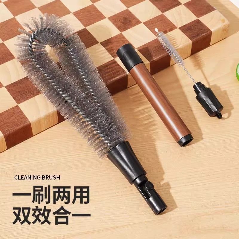 二合一胡桃木纹杯刷破壁机清洁刷长柄可拆卸吸管刷杯盖缝隙刷神器
