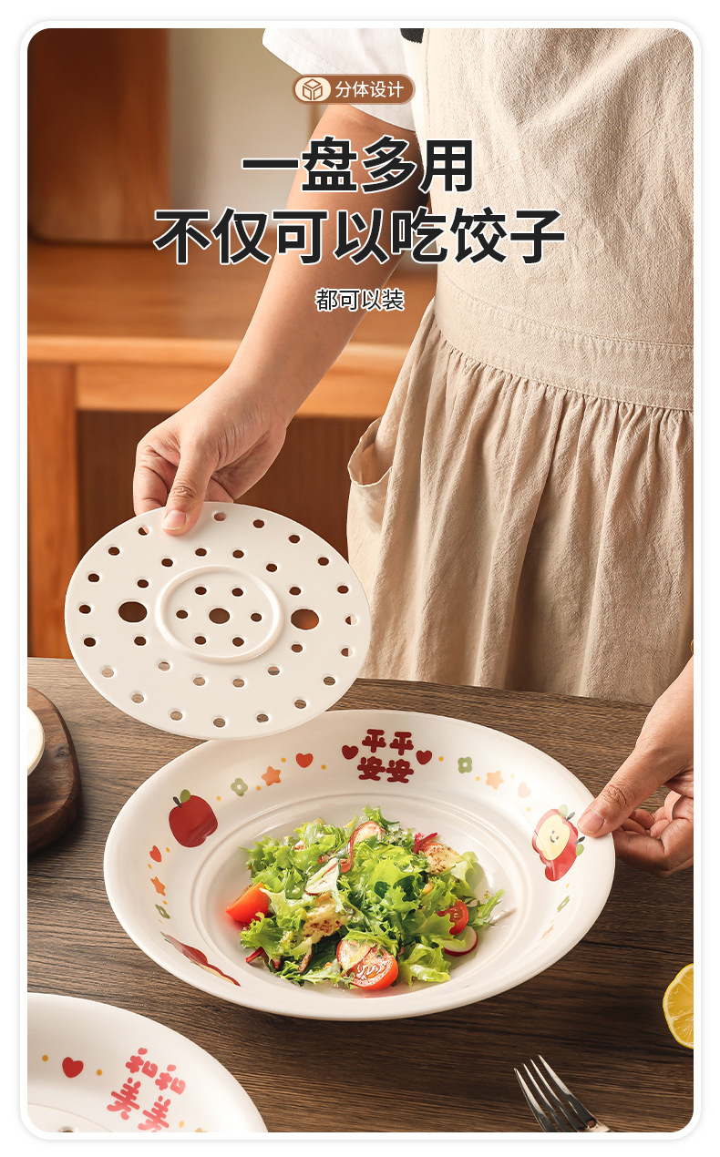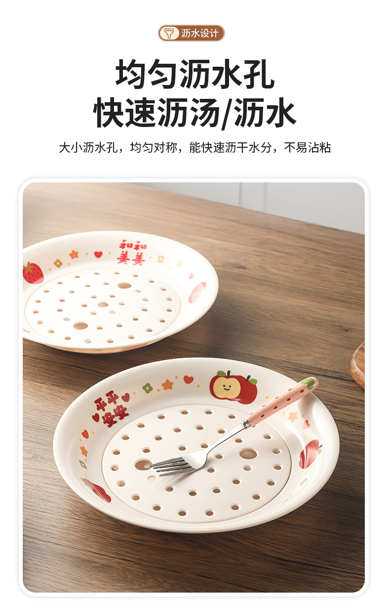 メラミン餃子皿水切り二重高級模造磁器皿多用皿果物皿食器家庭用クリエイティブ果物皿