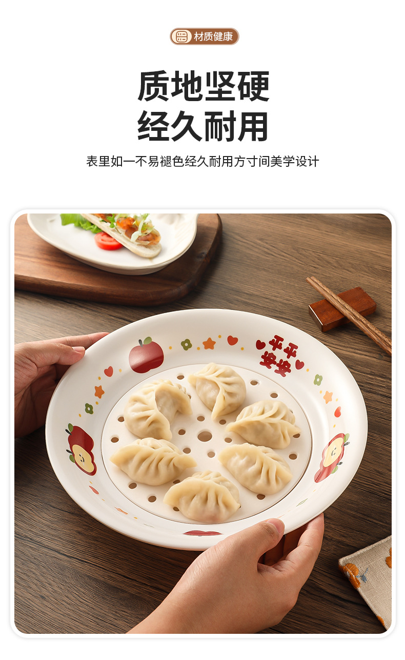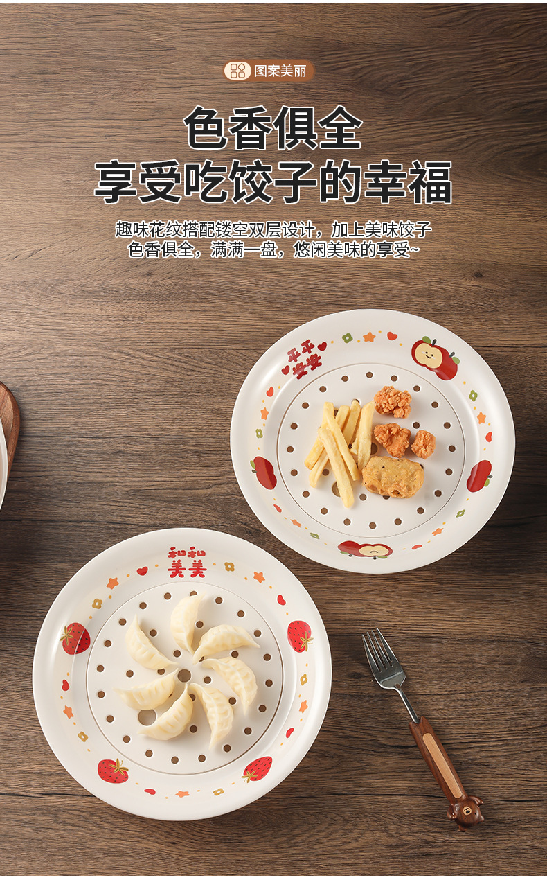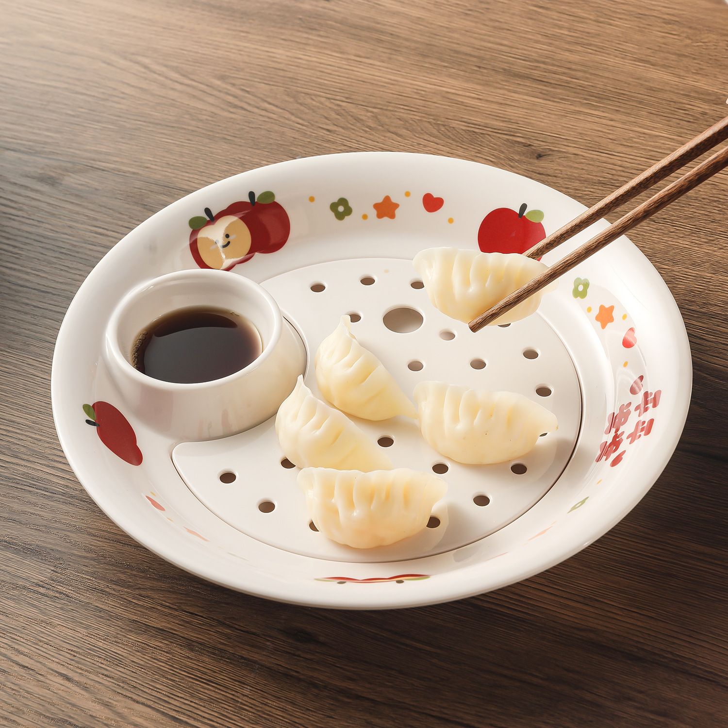 家庭用水切り二重餃子皿創意柿如意食品級メラミン食器水餃子円形皿代発