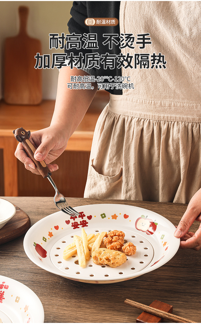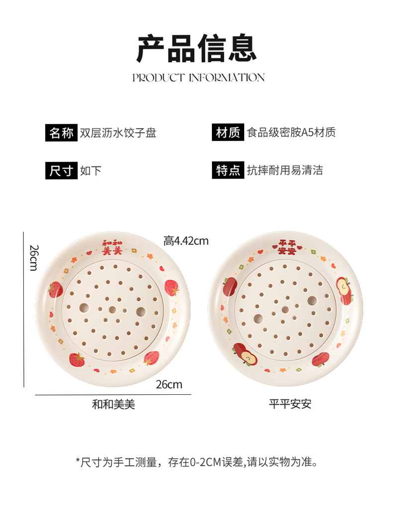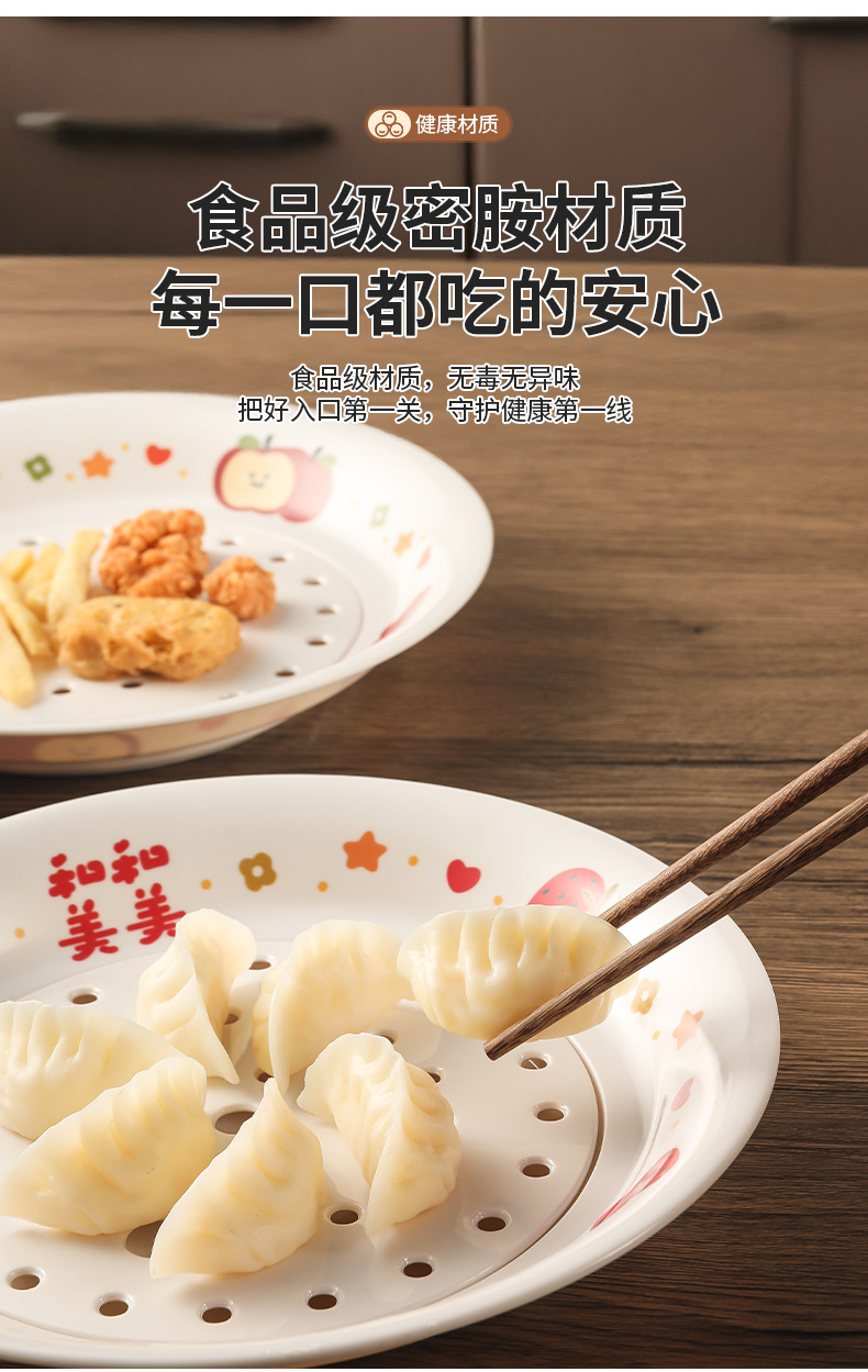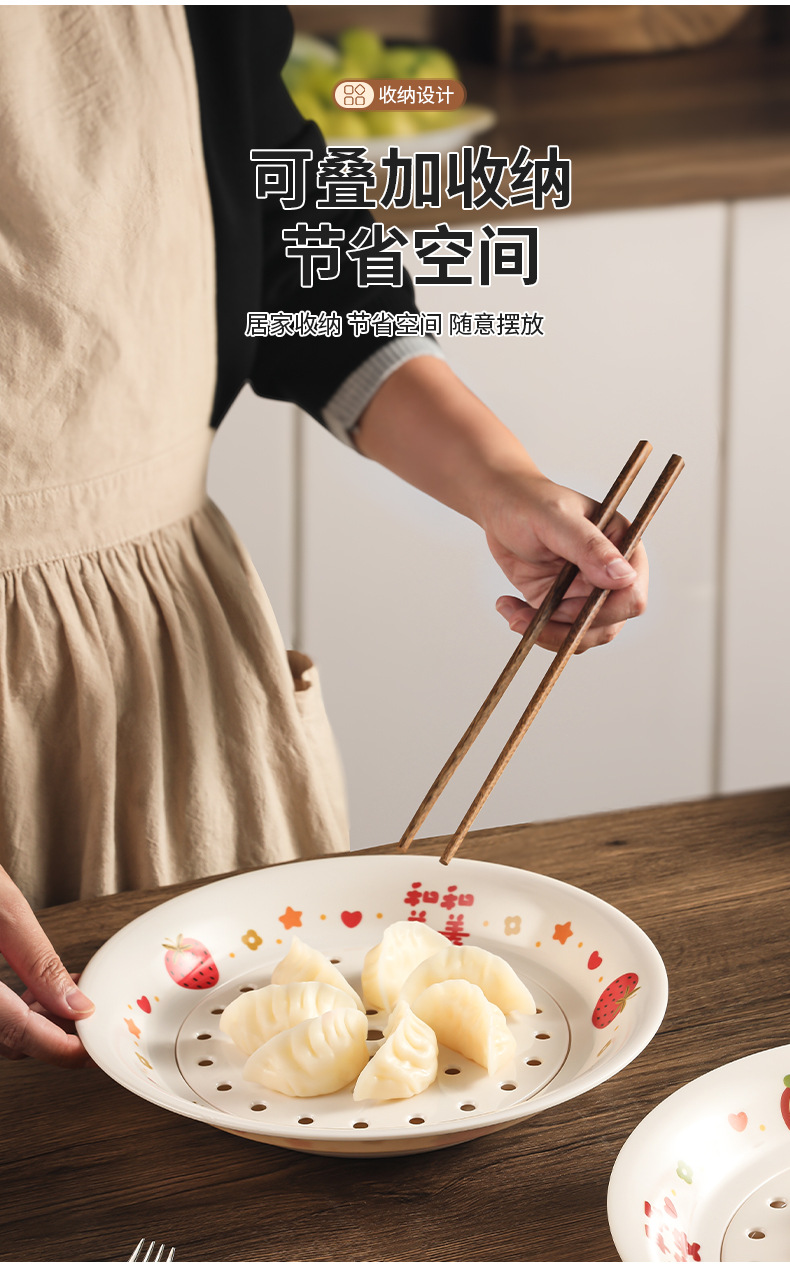 家庭用水切り二重餃子皿創意柿如意食品級メラミン食器水餃子円形皿代発