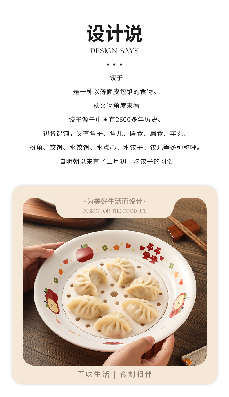 创意陶瓷蒸盘高颜值饺子盘沥水双层盘蒸饺盘家用水饺盘沥油菜盘子