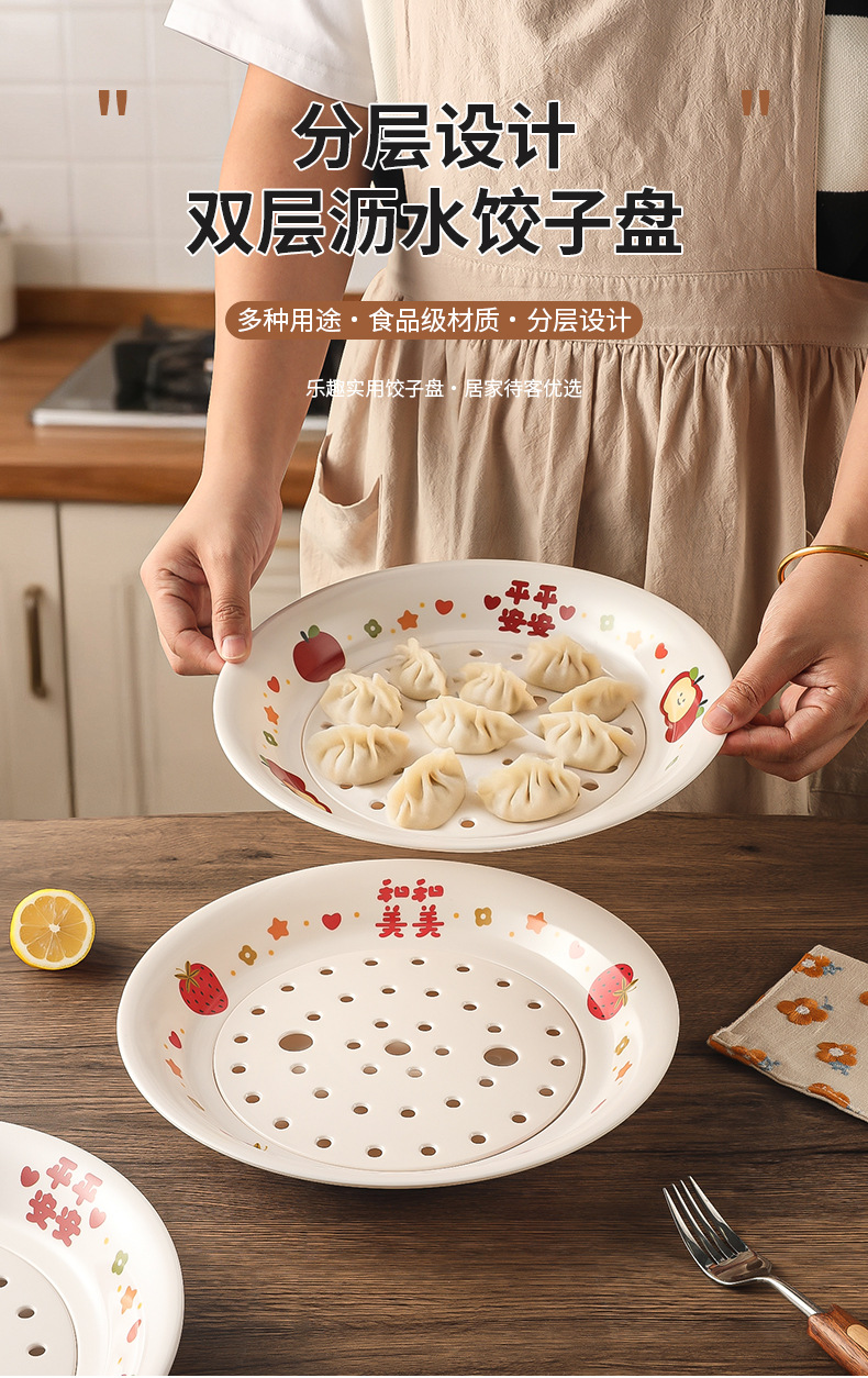家用饺子盘沥水双层圆形食品级吃饺子专用盘耐摔多功能圆盘早餐盘