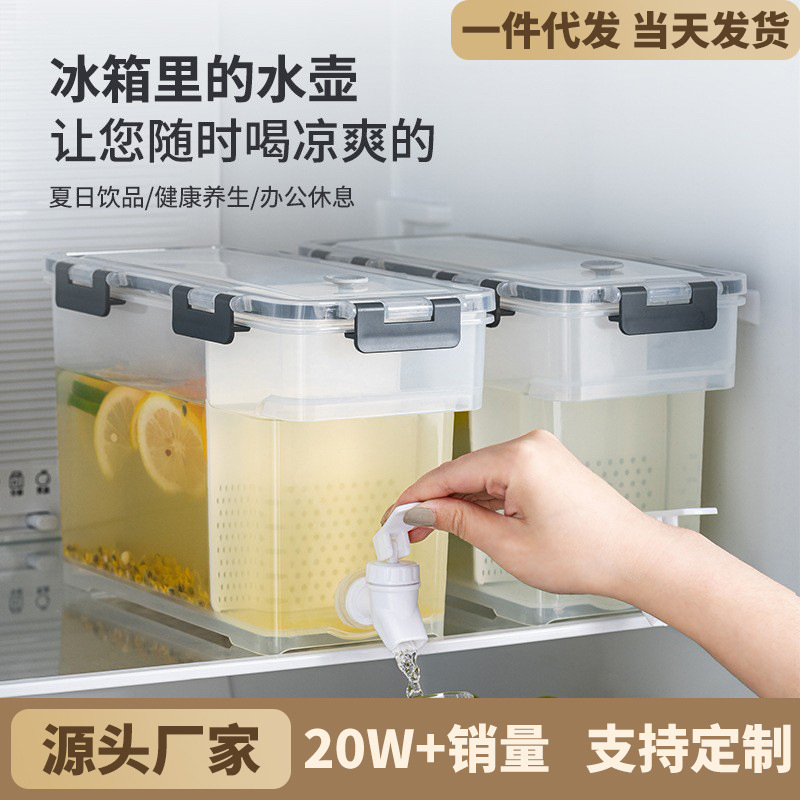 プラスチックの冷たい水筒の食品級は蛇口の冷蔵庫の大きいサイズの氷の水筒の冷たい泡のジュースの桶の大容量の冷たい水の桶の氷を持ちます。