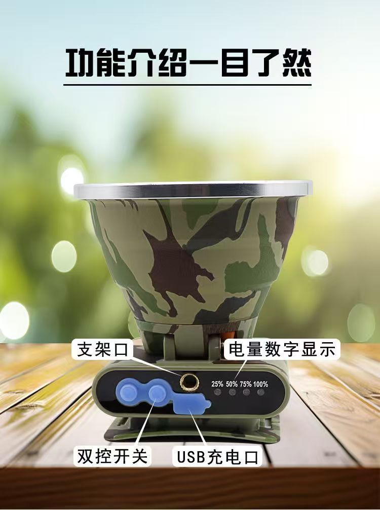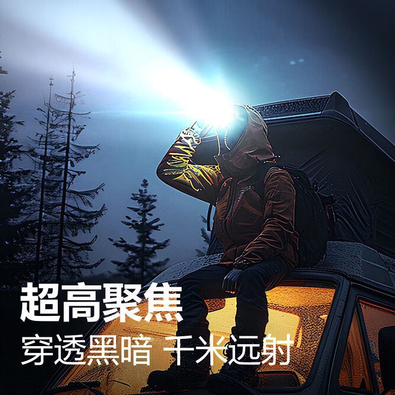 跨境LED头灯充电头戴式长续航锂电防水激光炮远射夜钓鱼矿灯便携