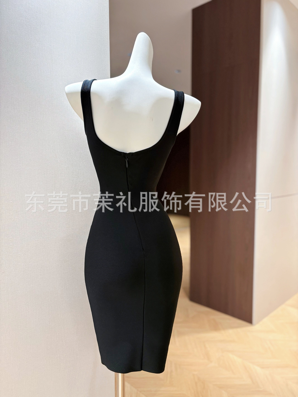 欧美2025跨境外贸纯欲风优雅抹胸露背修身连衣裙绷带裙