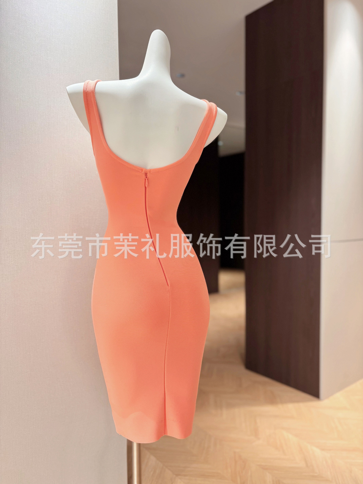 欧美纯欲女装纯色露背收腰紧身包臀绷带裙连衣裙