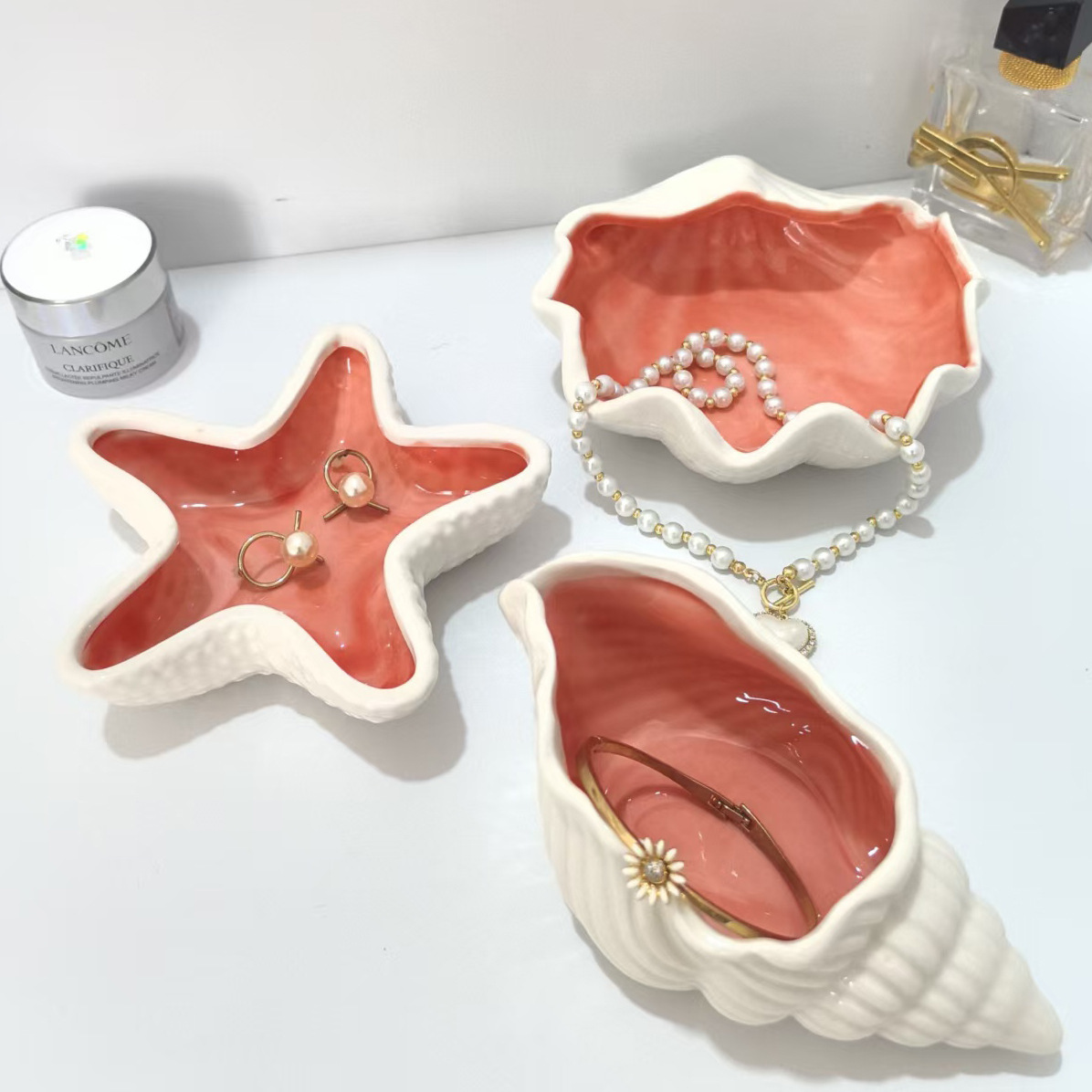 创意个性ins风高级感海星螺贝壳陶瓷家居收纳摆件跨境珠宝首饰