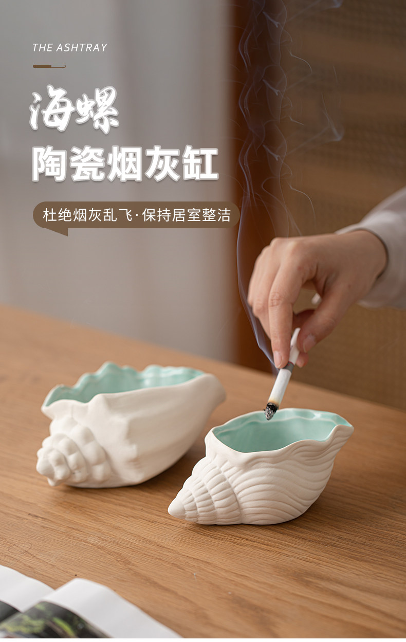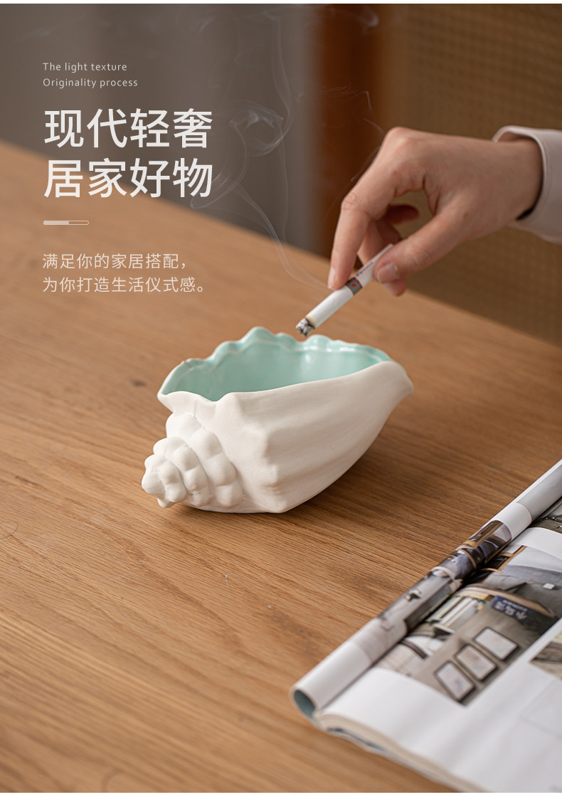 陶瓷烟灰缸创意个性潮流家用客厅ins风防飞灰大号海螺纳摆件