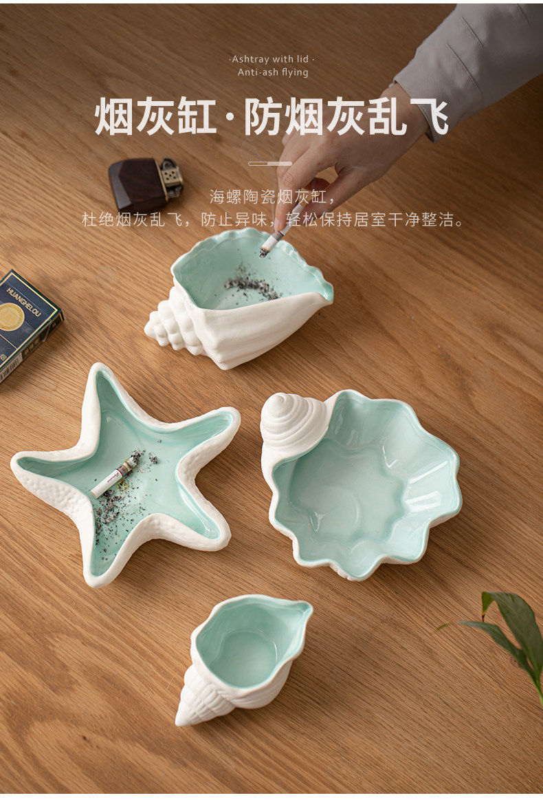 灰皿創意個性潮流ファッション防飛灰家庭用客間北欧海星isn風陶磁器置物