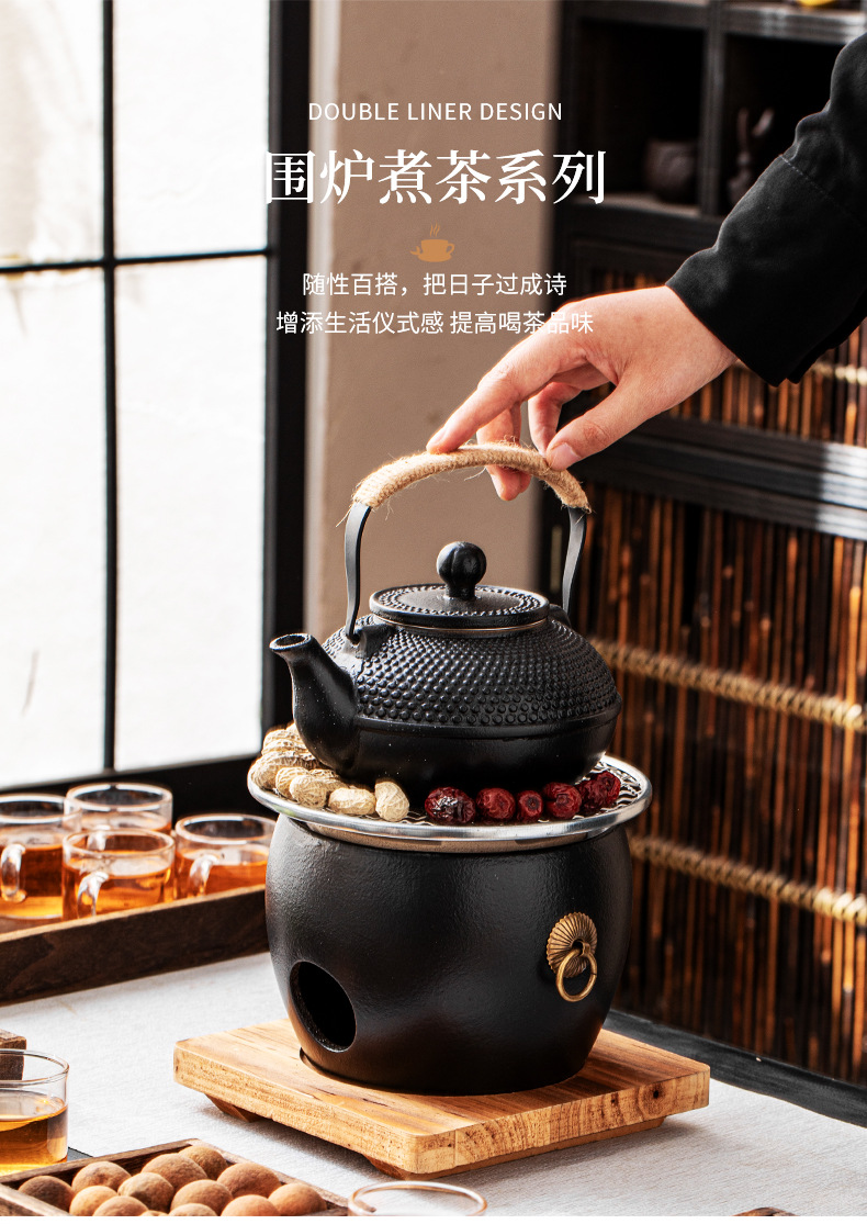 赤泥砂鋸壺炭火炉屋外囲炉裏煮茶ストーブセット煮ティーポット家庭用湯たんぽ煮茶ストーブ