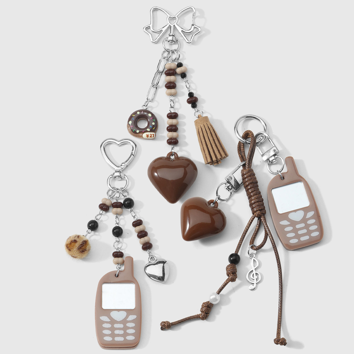 ins百搭可爱串珠甜甜圈亚克力爱心手机镜子编织绳钥匙扣包包挂件