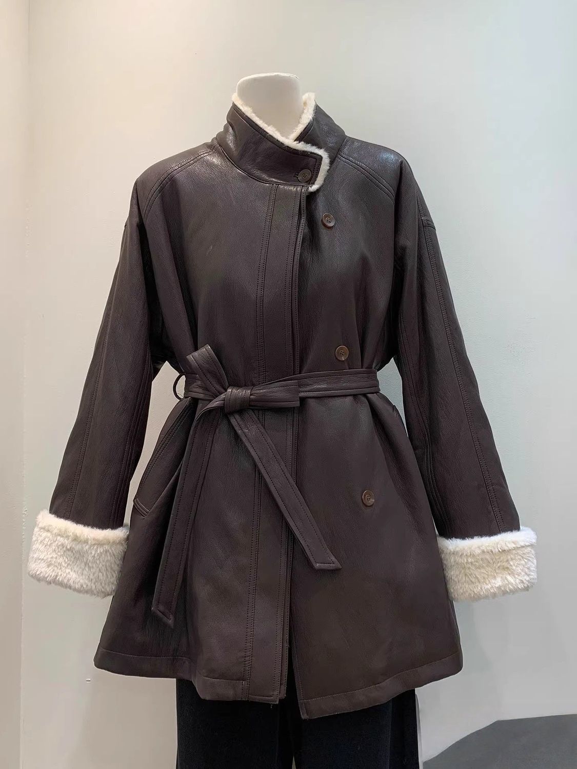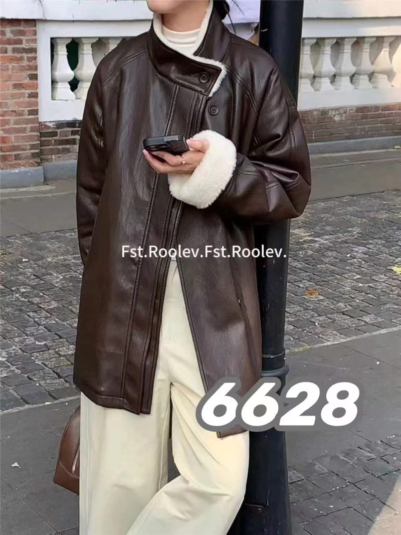 中长款复古美拉德高级感独特超好看加绒立领咖色皮衣外套女秋冬季
