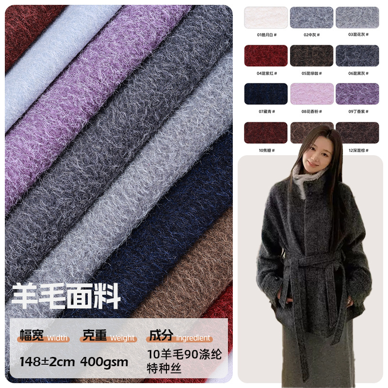 25110 秋冬10羊毛90涤纶特种丝面料 外套大衣套装现代布料