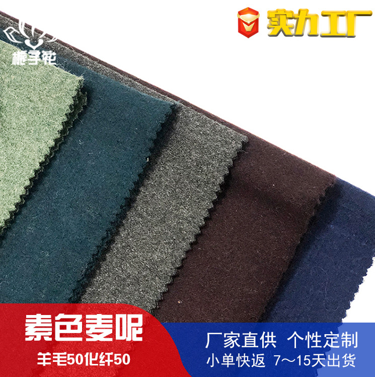 50毛の化学繊維の混紡の無地の麦爾登の生地の逸品の麦の風の服の布の毛の布のメーカーは直接供給します。
