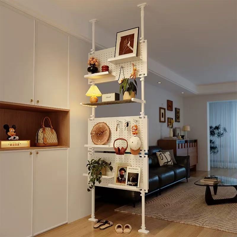 门后置物架入户玄关洞洞板顶天立地挂衣架一体薄衣帽架隔断免打孔