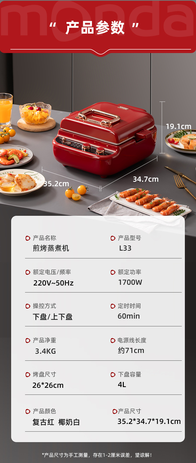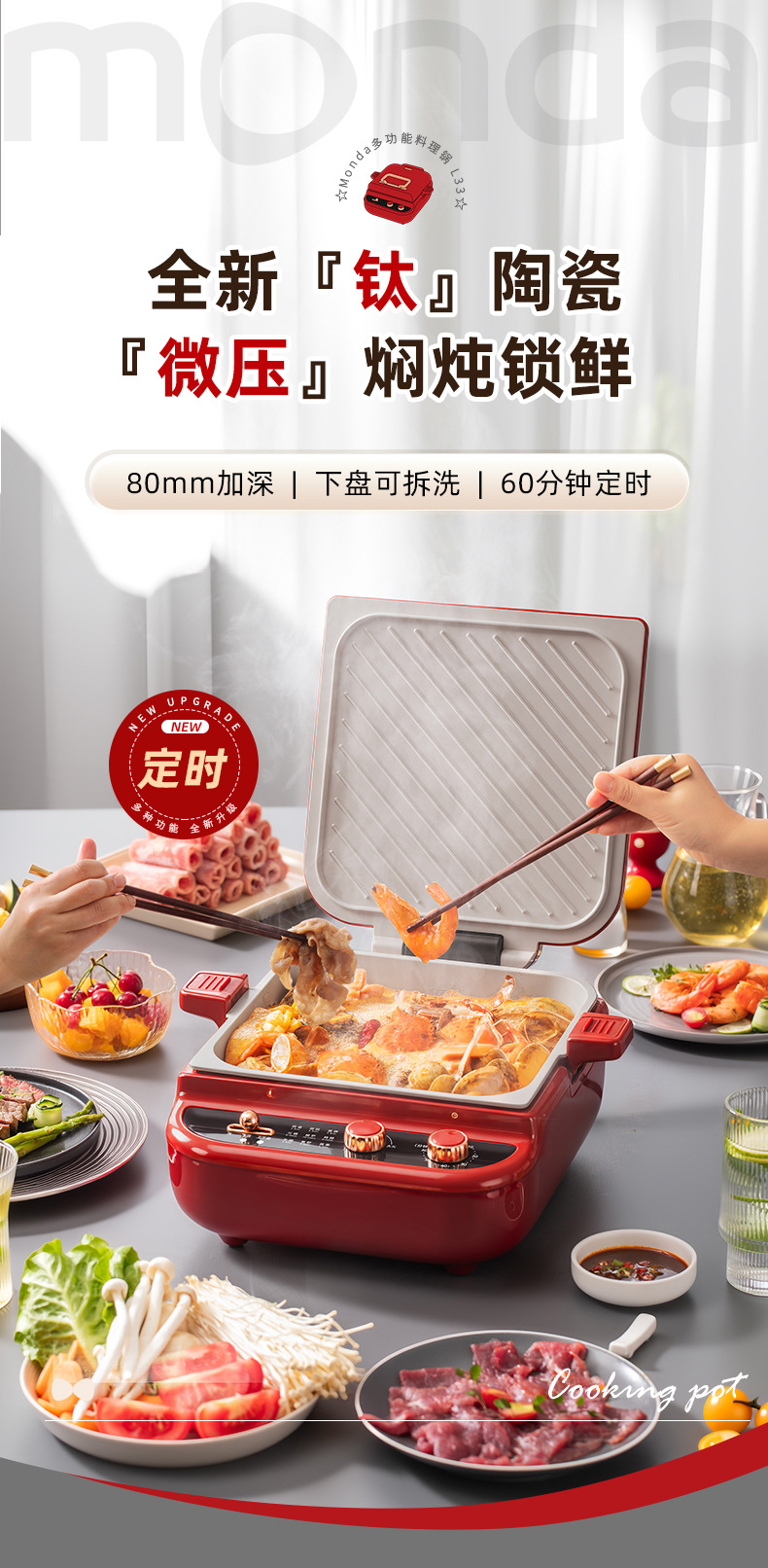 Monda蒙達多機能料理鍋電気鍋家庭用電気煮鍋電気鍋卸売りプレゼントクロスボーダー