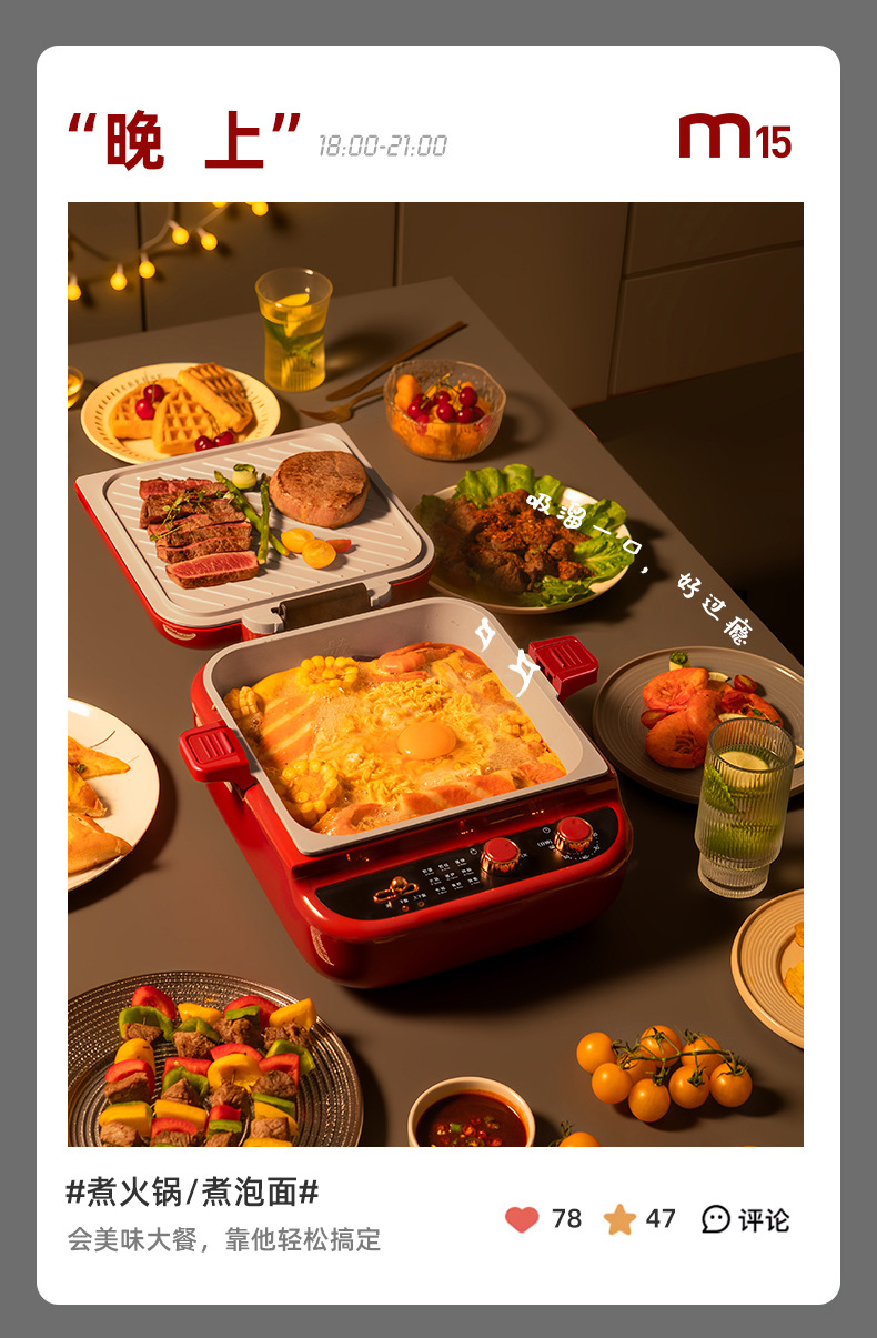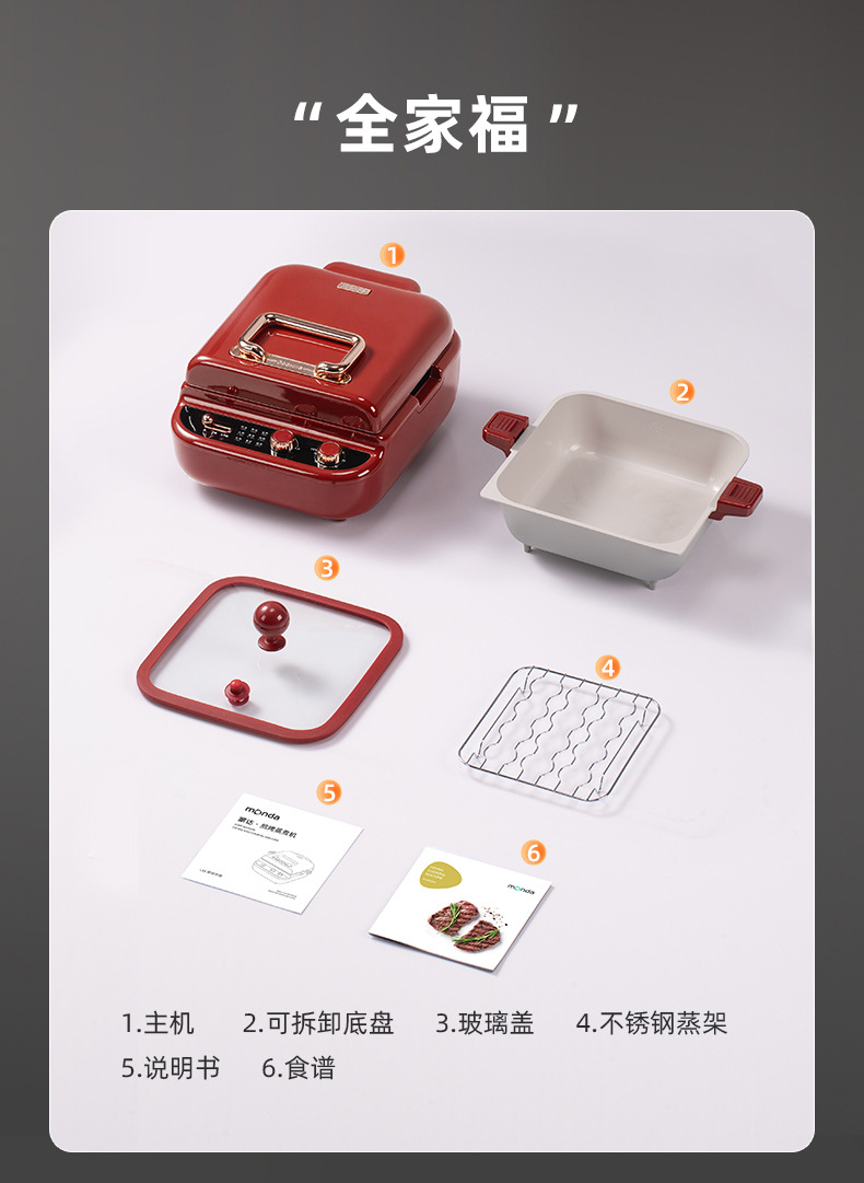 monda多功能料理锅家用可拆卸电饼铛档加深电火锅烧烤煎烤蒸代发