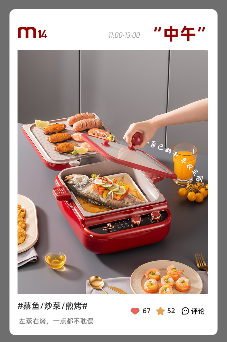 monda多機能ピザメーカー家庭用電気パンチーパンチタニウムセラミックバーベキュー焼き蒸し器両面加熱卸売