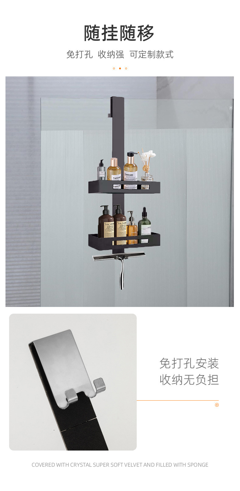 免打孔淋浴房玻璃门置物架挂架壁挂浴室不锈钢挂篮卫生间收纳架子