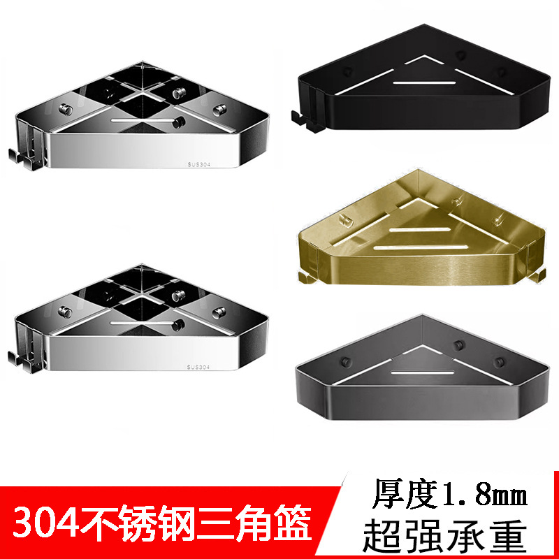 枪灰色304不锈钢浴室三角篮拉丝金色置物架厕所卫生间转角架直销