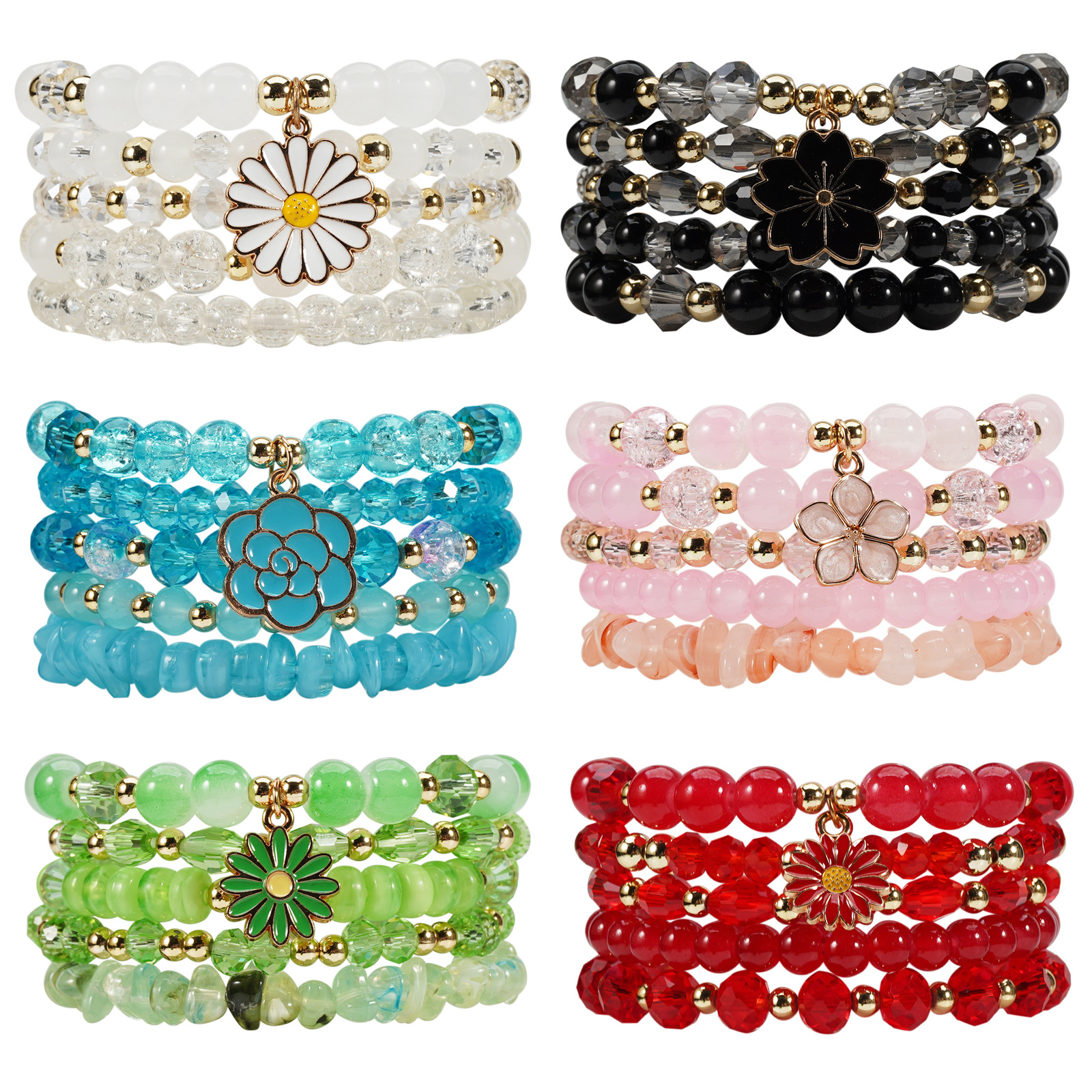 波西米亚花朵吊坠手链 欧美跨境饰品人造水晶串珠多层手链批发