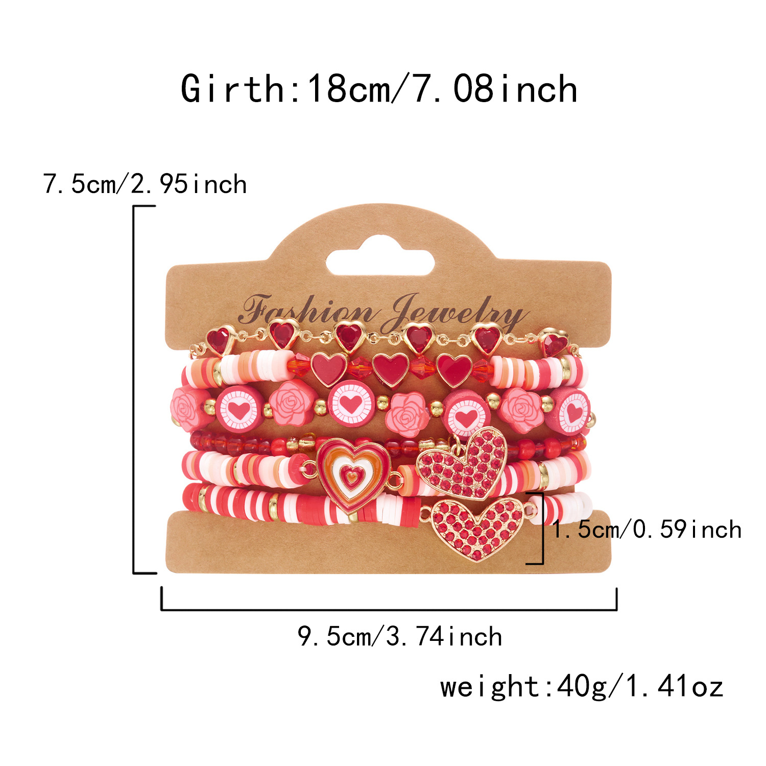 欧美跨境情人节叠戴手链套装 红色爱心礼盒软陶水晶卡纸手链5条装