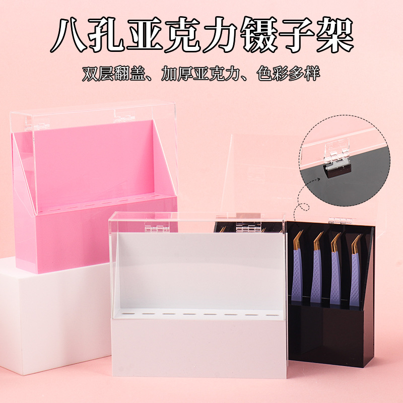 新款亚克力带翻盖防尘睫毛镊子架8孔收纳架嫁接镊子展收睫毛收纳