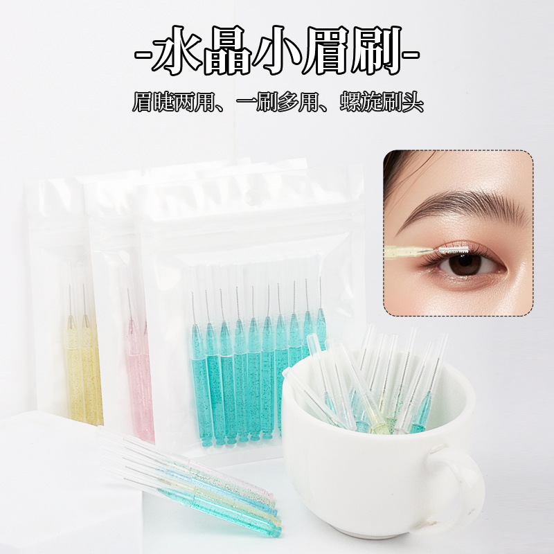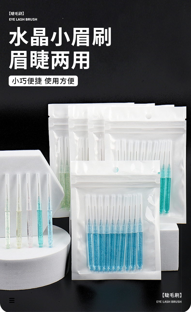 批发水晶杆牙缝刷10支/包便携袋装一次性直线齿间刷眉刷美妆工具