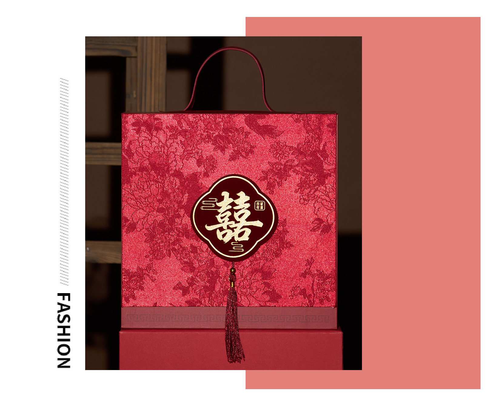 新型結婚ギフトボックス高級感喜糖箱包装箱大サイズ手提げ空箱卸売り伴手礼箱硬箱