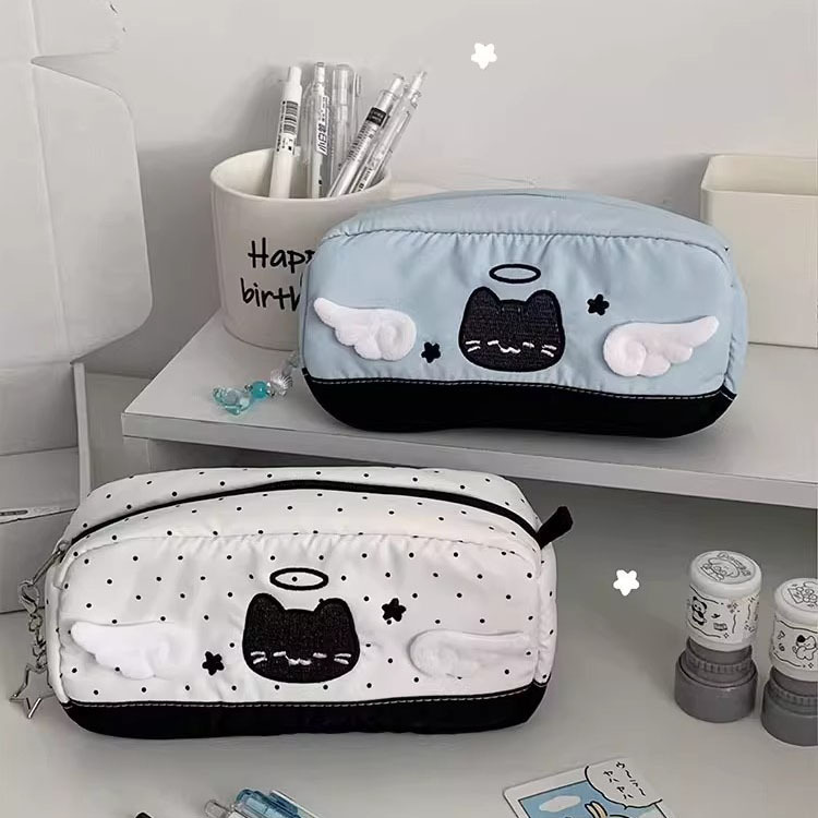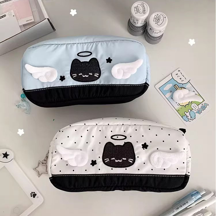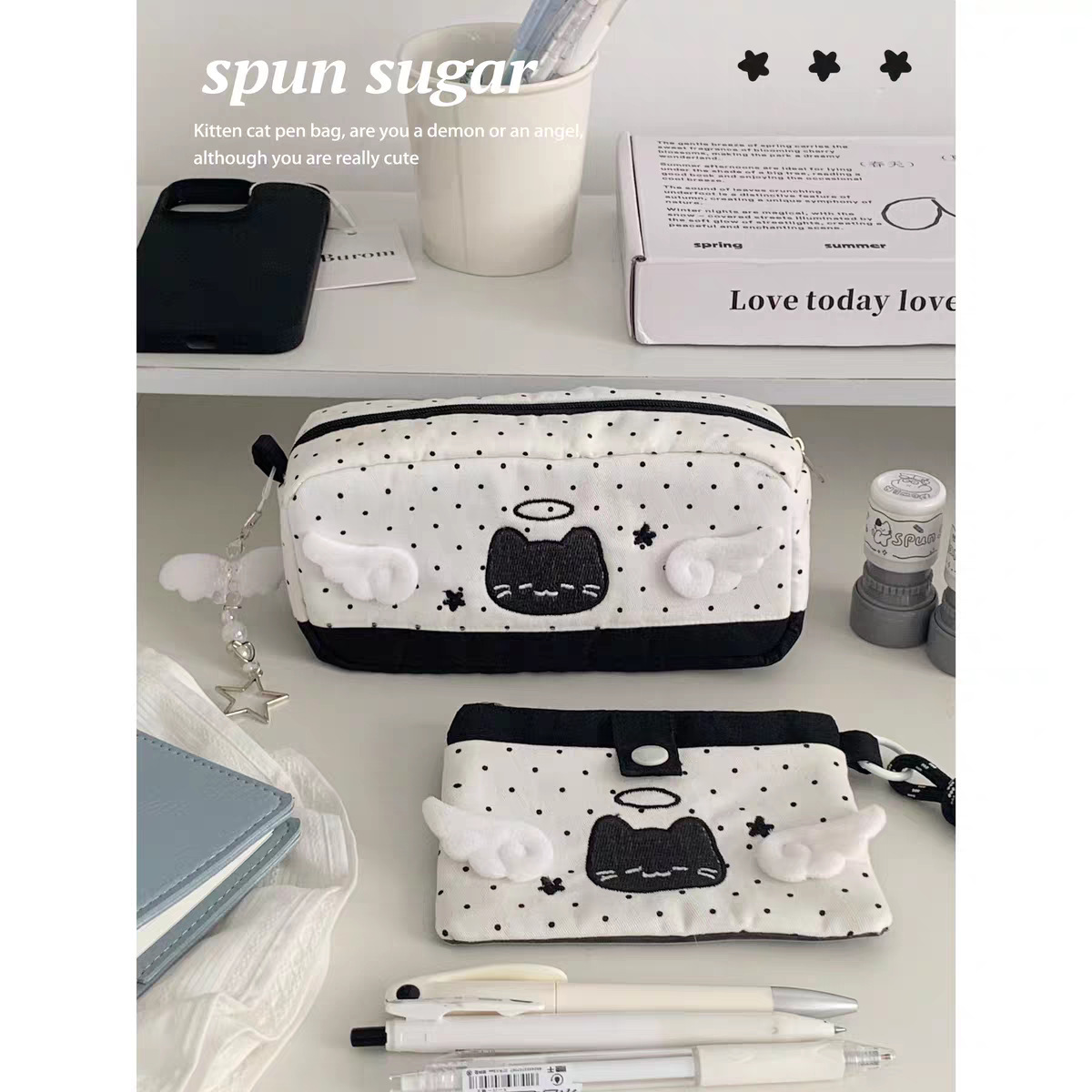 天使恶魔黑色波点猫咪笔袋高颜值容量学生文具收纳袋铅笔盒卡包