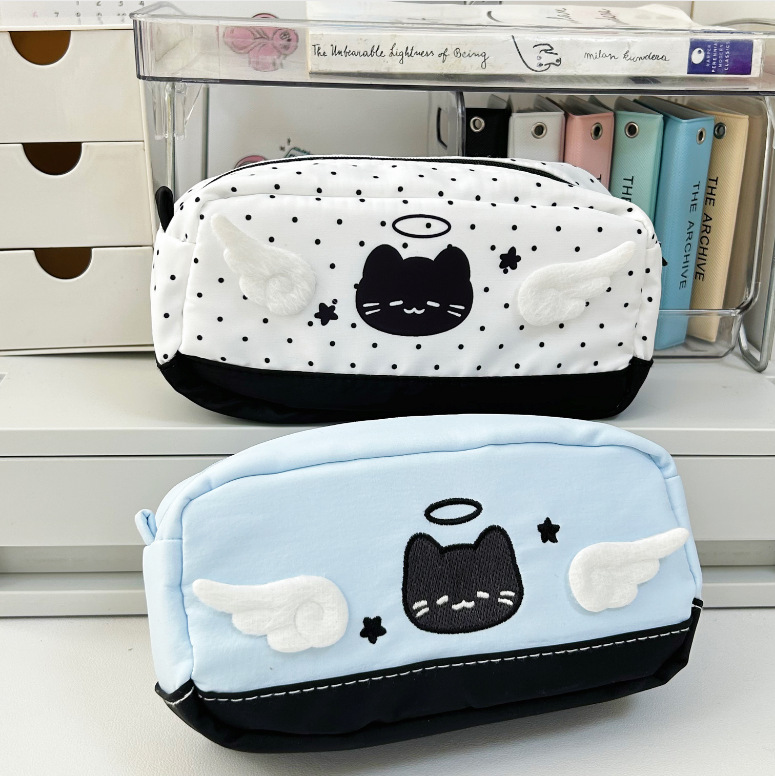 新款蓝色波点天使恶魔猫咪笔袋ins容量学生文具收纳袋铅笔盒耐脏