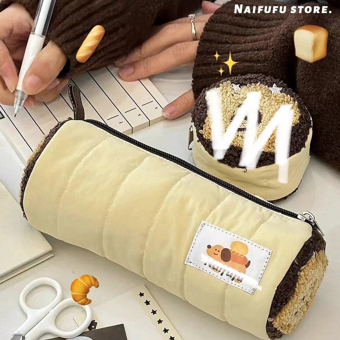 韓国版パン犬ベージュ色筆袋ins高颜値大容量化粧バッグ収納筆袋学生必須