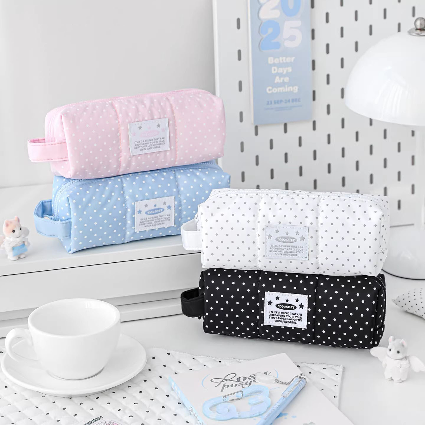简约手提波点笔袋ins高颜值大容量文具收纳袋学生铅笔袋桌面收纳