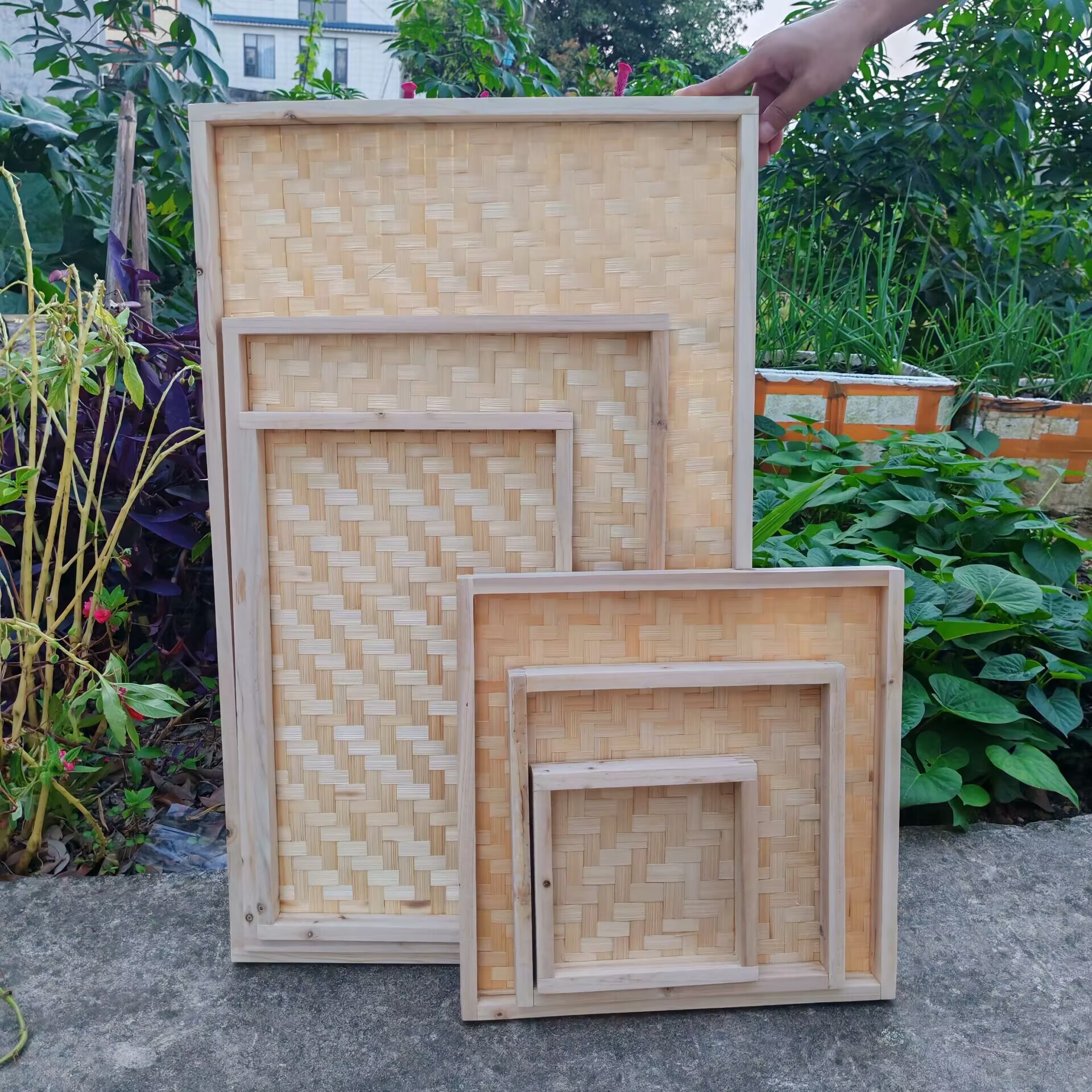 新款方形竹编簸箕 家用吊顶装饰竹匾竹筛 绘画晾晒烘干茶药竹制品