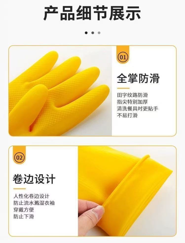 厨房家务手套加厚牛筋乳胶手套清洁防水防油清洗加大加长耐用手套