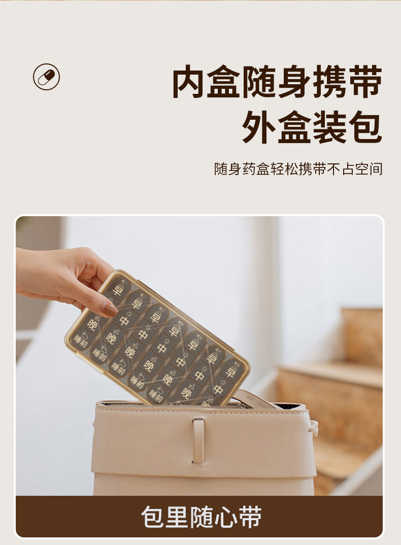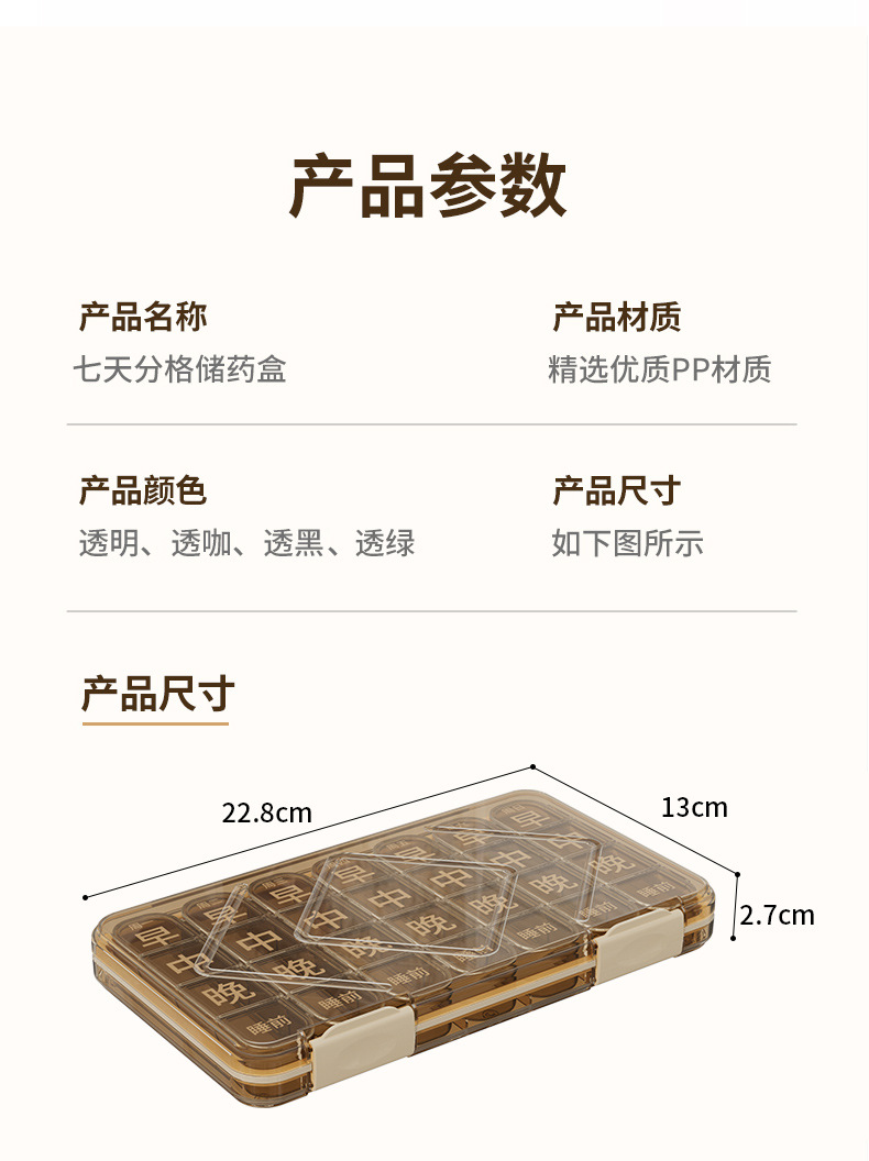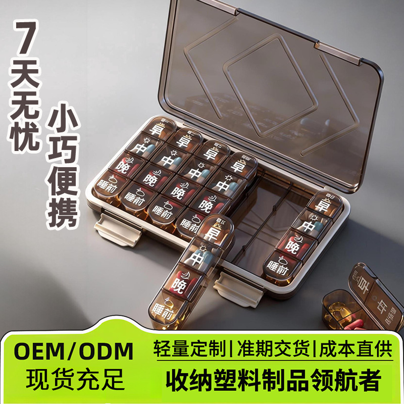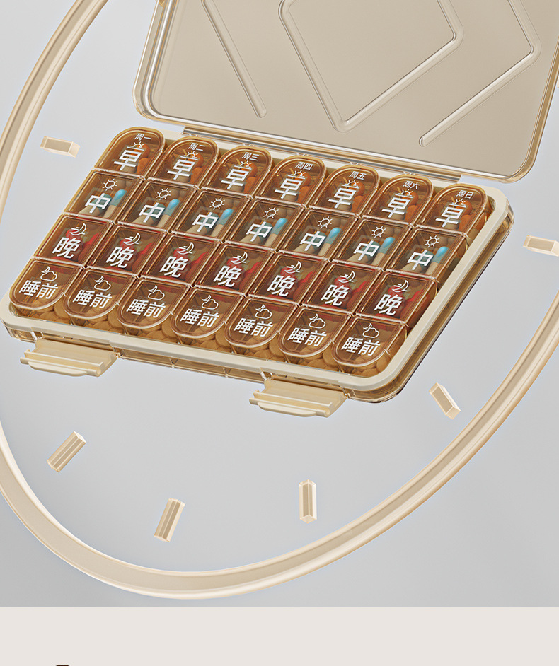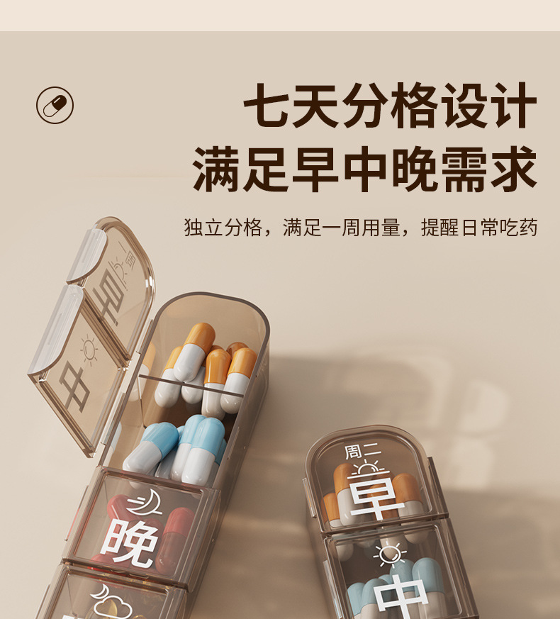 老年人分药盒一周七天便携药品分装盒吃药提醒一日三餐健忘小药盒