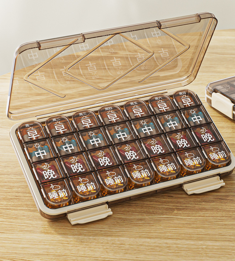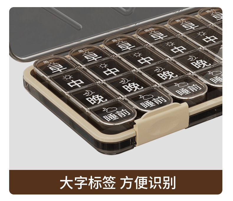 老年人大字版药盒一周七天便携分药器分格收纳盒防潮三餐分装药盒