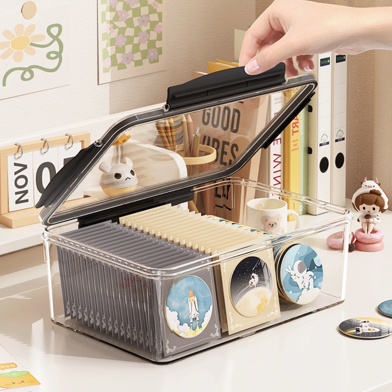密封防湿収納ボックスバーピン周辺バッジ谷子大容量高透アクリルカード収納ボックス
