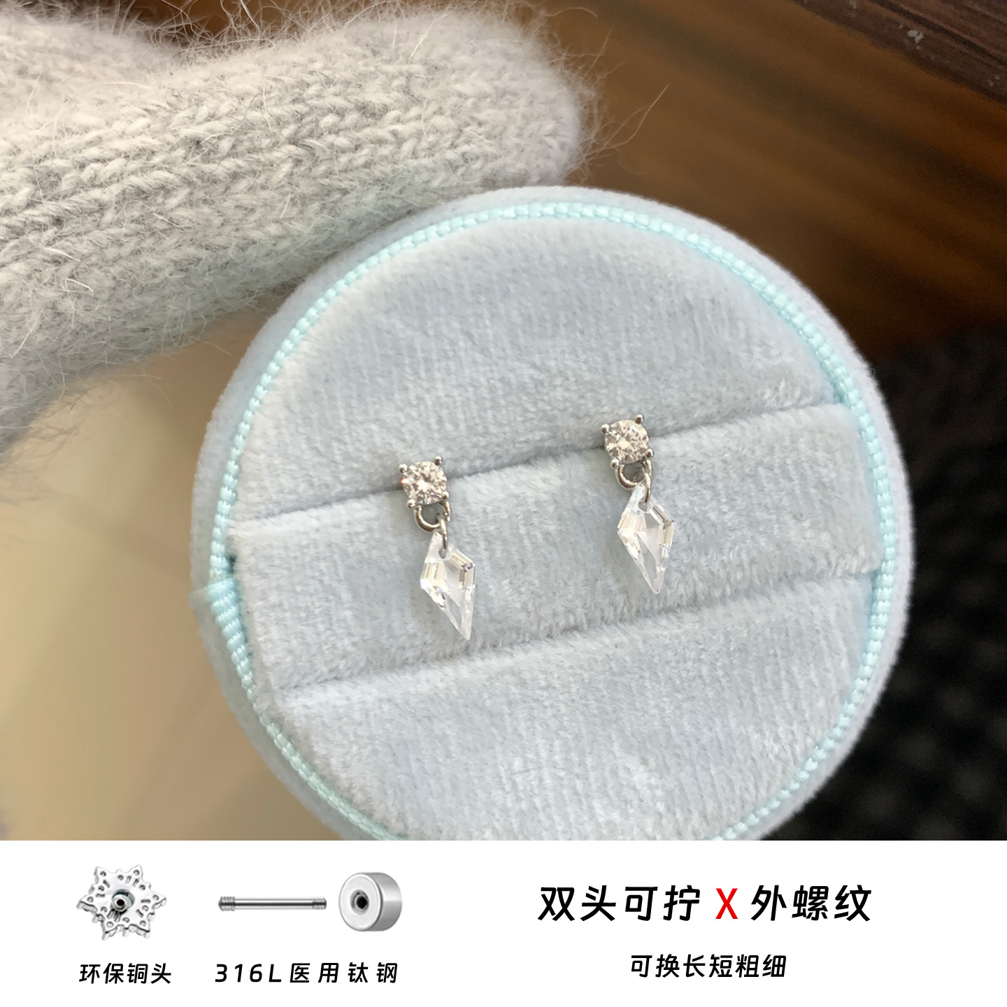 316L医用钛钢灵动风筝耳骨钉几何菱形吊坠耳钉简约百搭养耳洞耳饰