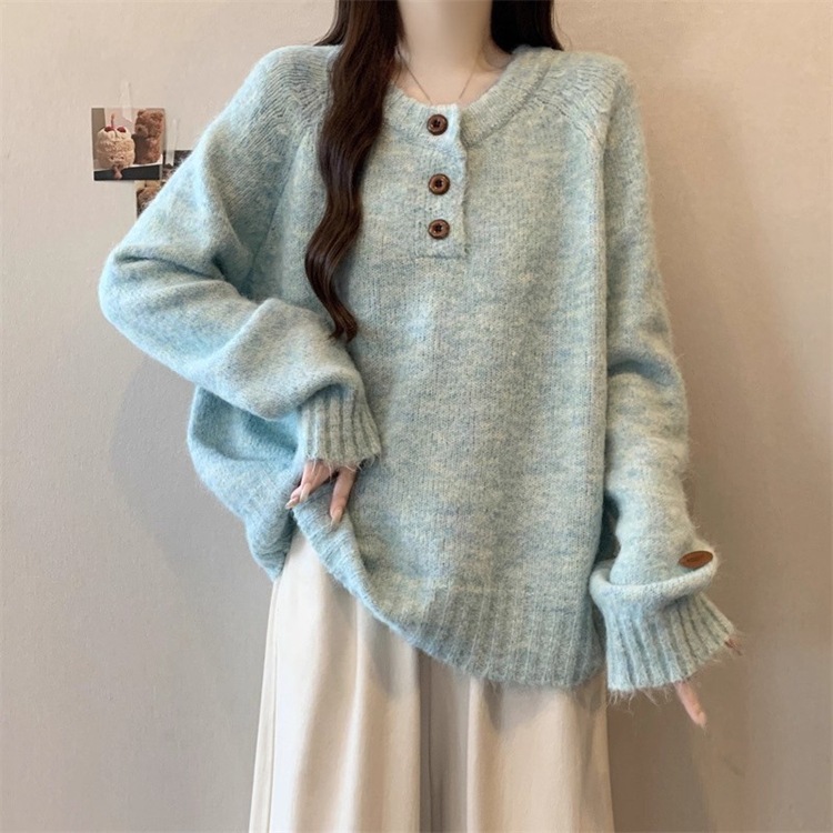 レトロなホーンボタンセーター秋冬コート韓国風ゆったりニットカーディガンアウターウェア新作レディース秋
