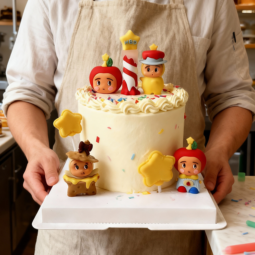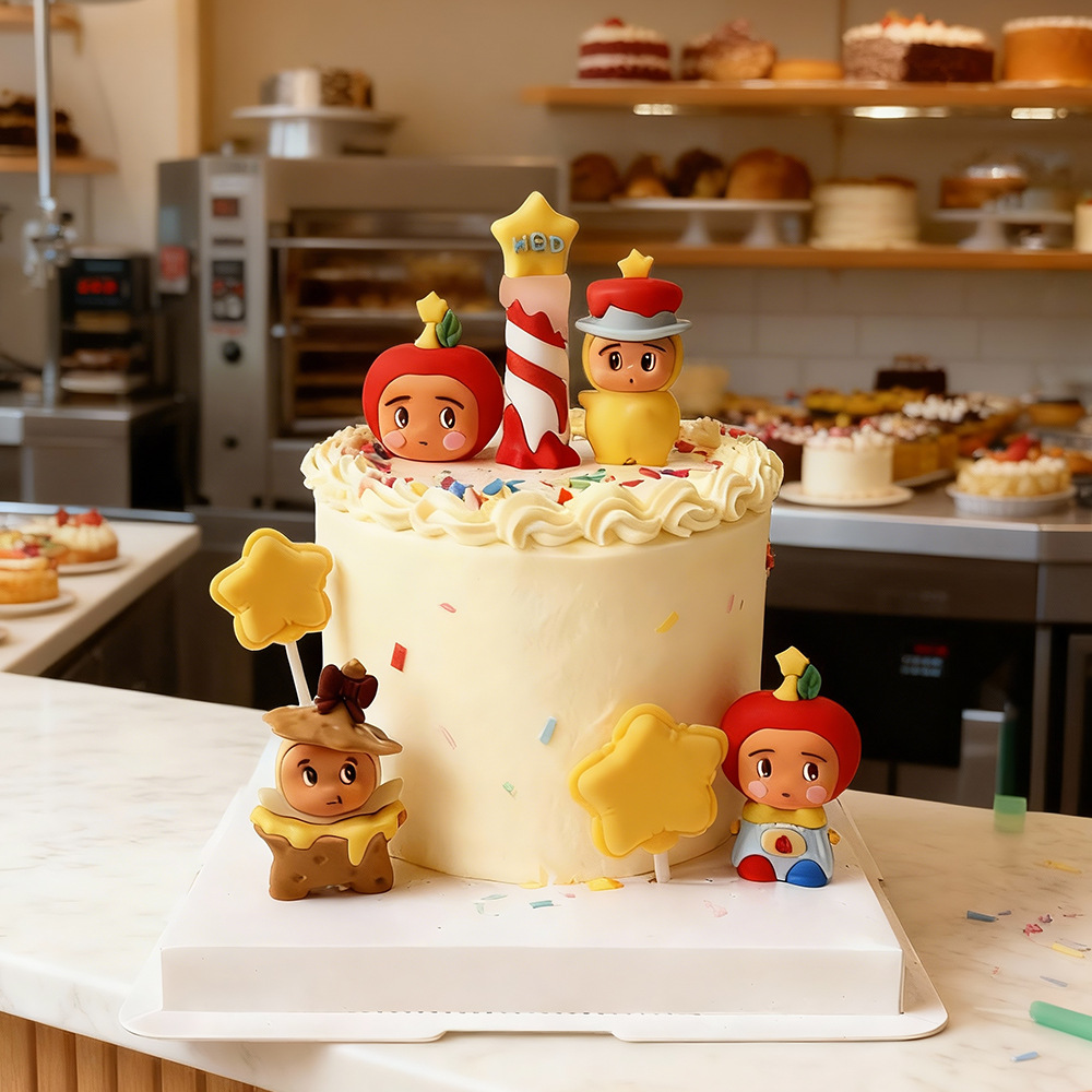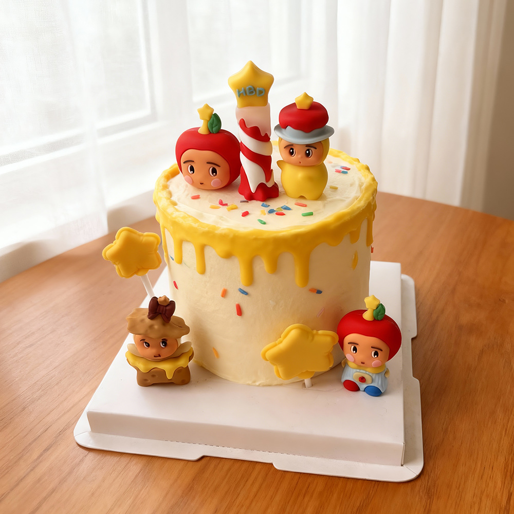 卡通小星人苹果饼干蜡烛立体公仔桌面摆件黄色星星装扮小礼品批发