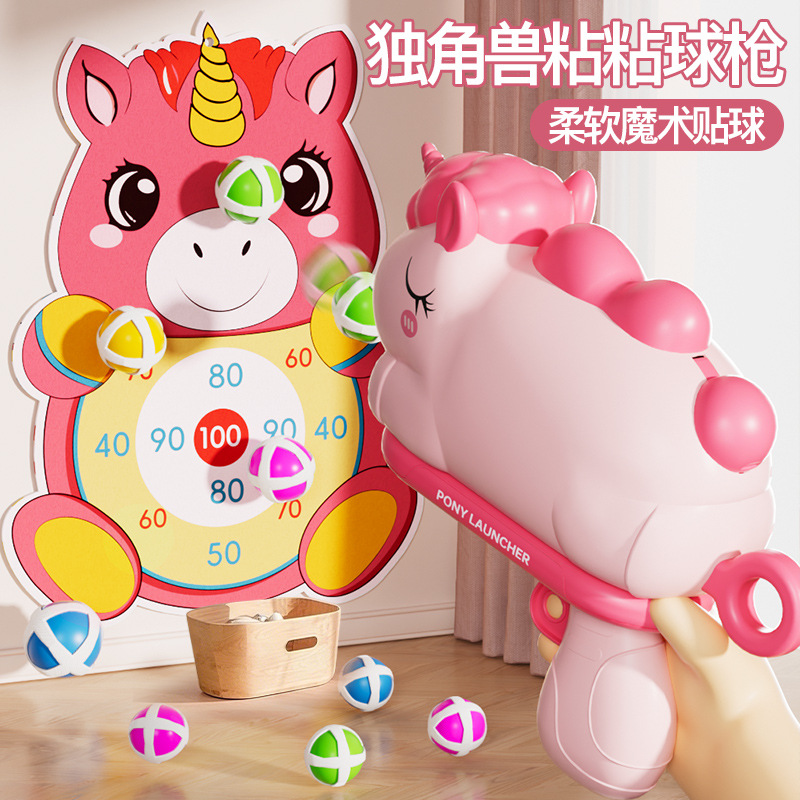 ユニコーンのボールの銃はボールの標的にくっつきます。