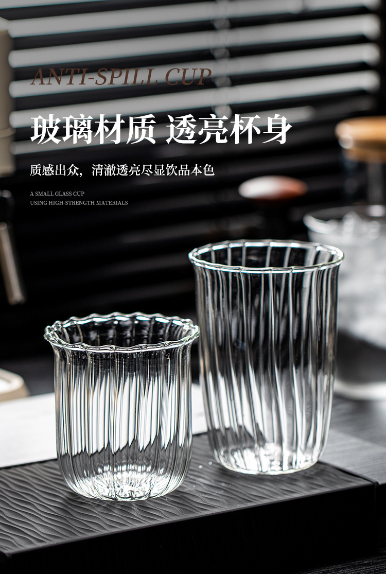 高硼硅耐热玻璃杯家用喝水杯咖啡杯牛奶杯高颜值拿铁杯竖纹冷萃杯