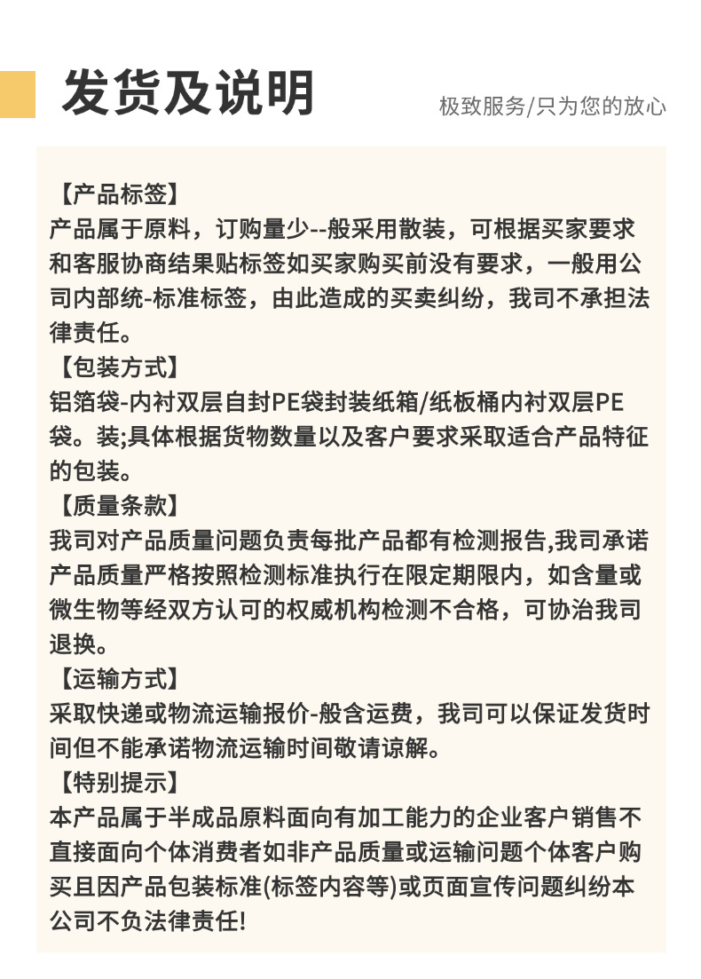 【外 观】:粉末松散无结块、色泽均匀。中等吸湿性,受潮易结块。