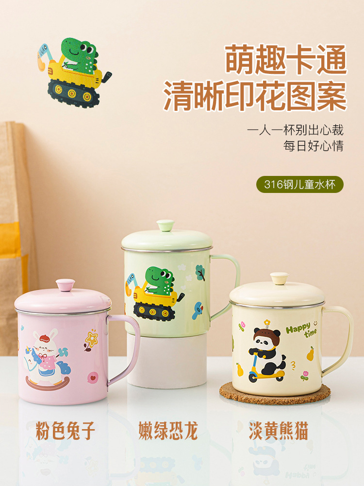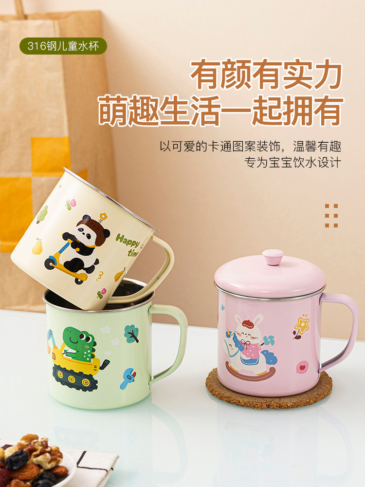 ステンレス304食品級児童アニメコップ家庭用赤ちゃん転倒防止幼稚園コップ親子家族