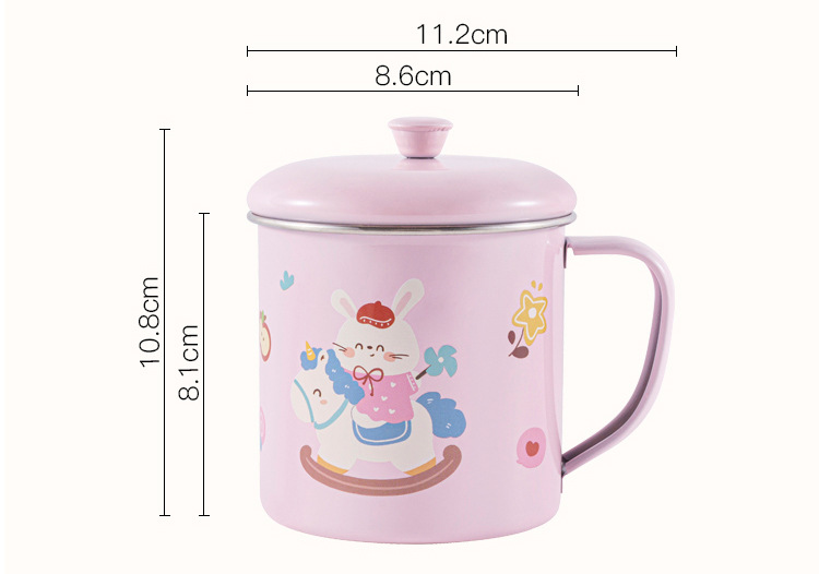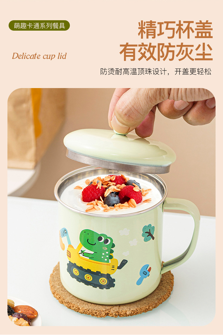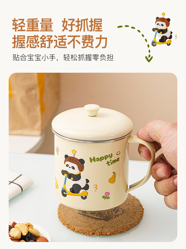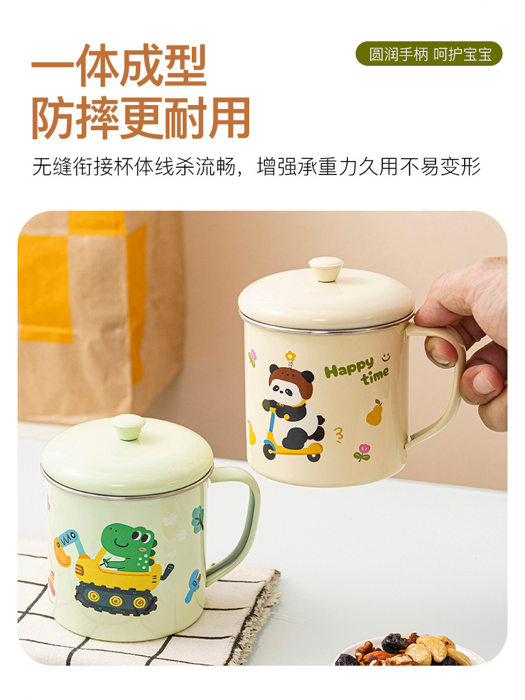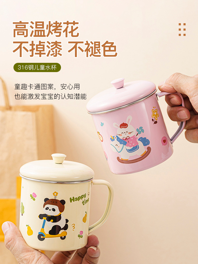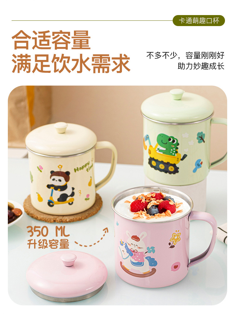 蓋付き 304 ステンレス鋼ウォーターカップ、模造エナメルカップ、オフィスドリンクカップ、クリエイティブ漫画カップ、ティーカップ、コンパニオン