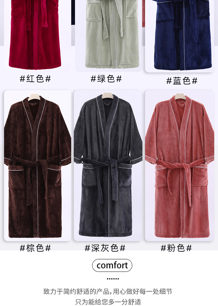 秋冬季睡袍男士冬天加厚加绒珊瑚绒睡衣大码家居服法兰绒保暖浴袍