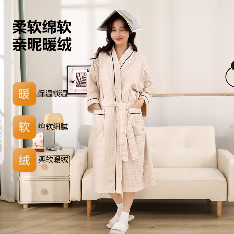 日式浴袍女长款春秋季情侣薄款华夫格吸水浴衣男跨境专供长袖