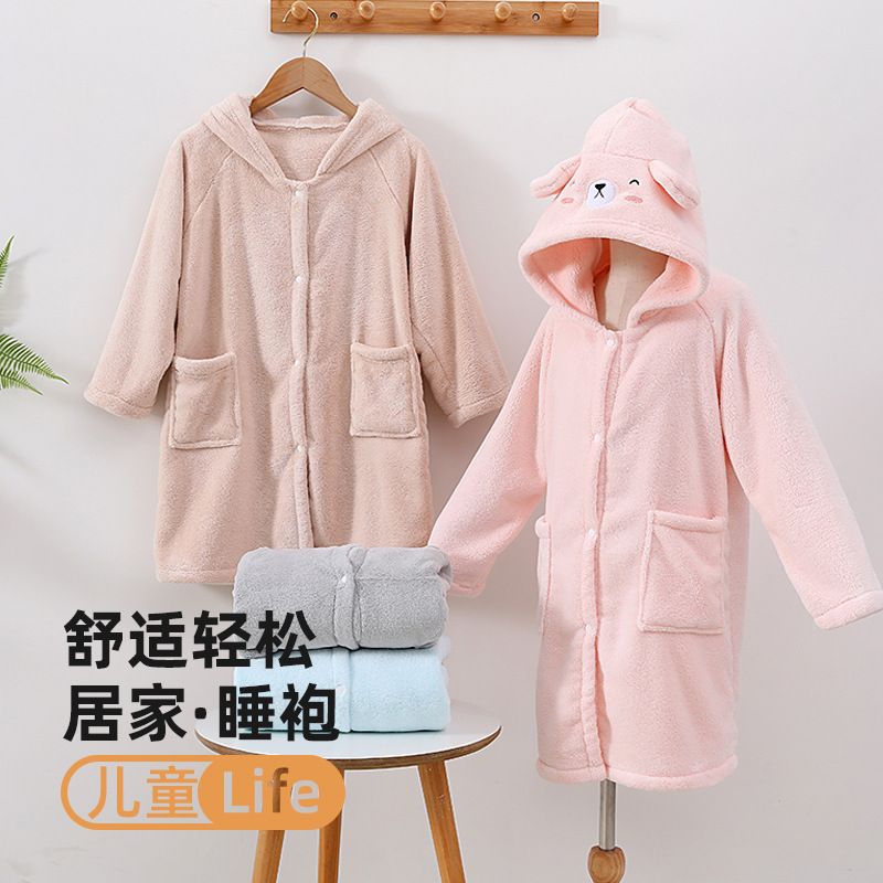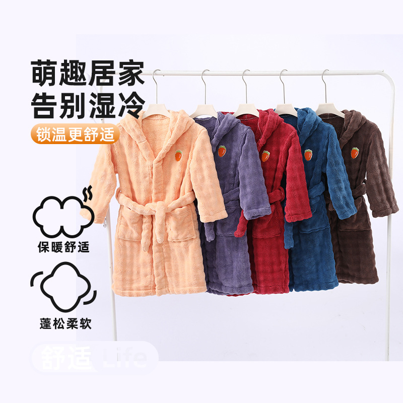 儿童浴袍冬季睡袍珊瑚绒加厚男童法兰绒宝宝的睡衣加长男孩家居袍