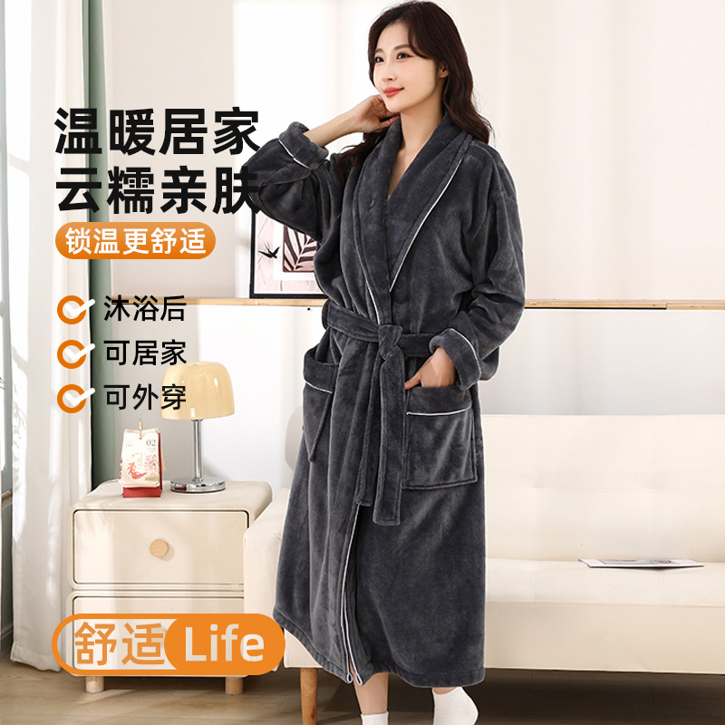 国境を越えたバスローブはフランネルのパジャマを厚くして、秋冬のパジャマ女性カップルの部屋服男性女性のバスローブのパジャマ